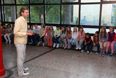 Прва љубав трећи пут![]() Прва књига из библиотеке Златно Гашино перо, "Прва љубав трећи пут" Шима Ешића, представљена је првог дана Фестивала. Нове песме прошлогодишњег лауреата које су, како је сам признао, настајале последњих месеци, углавном на точковима, представио нам је песник лично и Душан Поп Ђурђев. Писци у школама![]() Првог дана Фестивала у основним школама на територији наше општине одржана су три сусрета деце и писаца. Један од њих је био у ОШ "Војислав Вока Савић" где је сусрет са ученицима другог и трећег разреда имао Дејан Алексић. Види чуда!![]() Све библиотеке на свету имају нешто заједничко. То су деца и писци. То је случај и са библиотеком из Краљева и лазаревачком библиотеком. Гаша је нашао Мићу![]() Најсвечанији тренутак првог дана Фестивала хумора за децу је додела Златног Гашиног пера. Ове године главна награда Фестивала припала је Мићи Данојлићу, сигурно једном од најпопуларнијих српских писаца данас. Његова прва књига за децу објављена је пре више од пола века и још увек су емоције које она носи живе и јаке. |