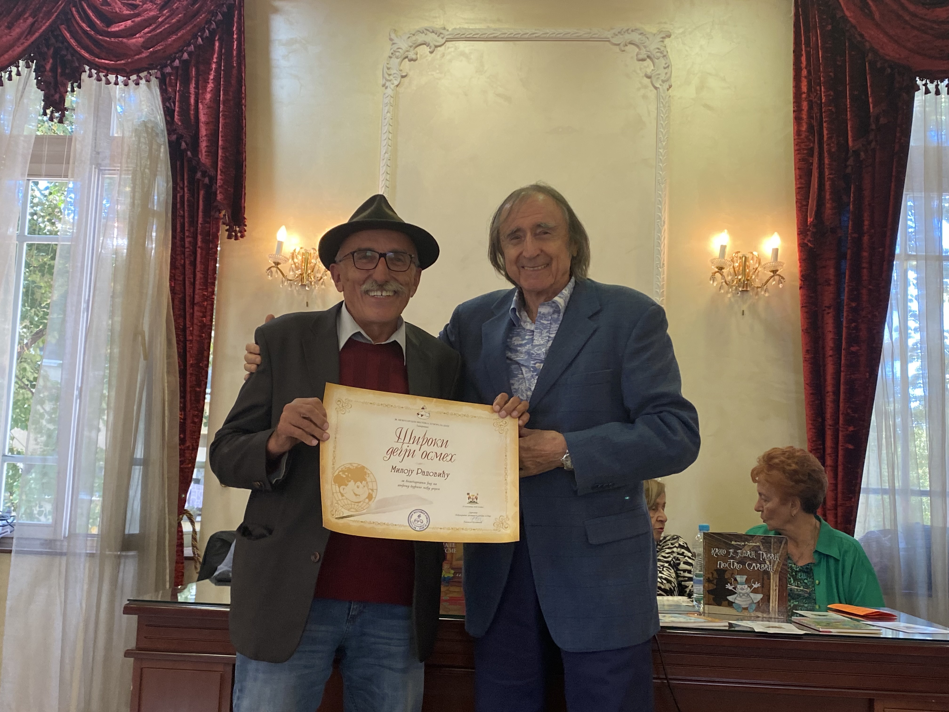 КО СЕ ШКОЛЕ БОЈИ ЈОШ - ПИСЦИ У ОСНОВНИМ ШКОЛАМА![]() Традиционално, други дан Фестивала хумора за децу почео је посетом дечијих писаца основним школама са територије наше општине и то, ОШ „Дуле Караклајић“, ОШ „Војислав Вока Савић“ и ОШ „Кнез Лазар“ у Лазаревцу, као и ОШ „Рудовци“ у Рудовцима, ОШ „Милорад Лабудовић Лабуд“ у Барошевцу, ОШ „Слободан Пенезић Крцун“ у Јунковцу и у Миросаљцима, ОШ „Михаило Младеновић Сеља“ у Дудовици, ОШ „Диша Ђурђевић“ у Новом Медошевцу, ОШ „Вук Караџић“ у Степојевцу и ОШ „Свети Сава“ у Великим Црљенима. ВИДИ ЧУДА - ЈУБИЛАРНИ БРОЈ ПОВЕЉИНОГ ДОДАТКА![]() Од 2006. године, основној свесци књижевног магазина „Повеља” придружена су и два додатка од којих је један „Види чуда”, који је по пети пут представљен лазаревачкој публици на Међународном фестивалу хумору за децу. Делове из додатка „Види чуда“ читали су Гордана Тимотијевић и Душан Поп Ђурђев, а јубиларни 50. број „Види чуда“ припао је управо Гордани Тимотијевић, која је и идејни творац овог додатка. НЕШТО ЛИЧНО И ТОМЕ СЛИЧНО - НОВА КЊИГА БРАНКА СТЕВАНОВИЋА![]() „Нешто лично и томе слично“, аутора Бранка Стевановића је нова књига у Библиотеци Златно Гашино перо и представљена је на овогодишњем Фестивалу гостима и ученицима шестог разреда Основне школе „Војислав Вока Савић“ из Лазаревца. ДИПЛОМА „ШИРОКИ ДЕЧЈИ ОСМЕХ“ УРУЧЕНА МИЛОЈУ РАДОВИЋУ![]() Милоје Радовић (Шароње, 1955) је библиотекар, писац за децу и одрасле, школовао се у Краљеву и Београду. Заступљен је у домаћим и страним антологијама. Аутор је бројних иновативних и креативних програма за децу. За резултате рада у библиотекарству проглашен је за Најбољег библиотекара у јавним библиотекама Србије 2010. године. |