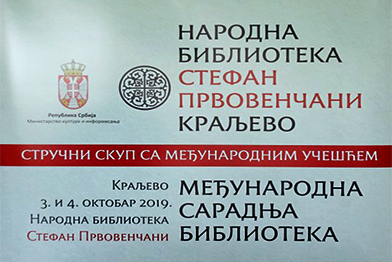 Међународна сарадња библиотека![]() Народна библиотека "Стефан Првовенчани" Краљево, другу годину за редом, организовала је стручни скуп библиотекара. Тема овогодишњег дводневног скупа била је "Међународна сарадња библиотека". Libraries: dialogue for change![]() У велелепном конгресном центру Мегарон, у грчкој престоници културе, уметности и филозофије Атини, од 24. до 30. августа 2019. одржан је 85. Светски библиотечки и информациони конгрес под називом "Libraries: dialogue for change". Међународна Сателит конференција IFLA![]() Међународна Сателит конференција IFLA Секције за рад са децом и младима одржана је 21. и 22. августа у Београду. Домаћин конференције била је Народна библиотека Србије, заједно са колегама из мреже јавних библиотека Србије. |