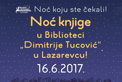 Изложба скулптура у холу библиотеке![]() У понедељак, 26. јуна у холу Библиотеке отворена је изложба скулптура у камену Илије Филиповића. "Сезан" - 41. колективна изложба![]() У среду, 14. јуна у библиотеци је отворена 41. колективна изложба полазника ликовног атељеа "Сезан". Изложбу су отворили директорка библиотеке Јасмина Иванковић, ликовни педагог Владимир Петровић и Зоран Ерић који води овај ликовни атеље већ 40 година. Ноћ књиге у библиотеци![]() Манифестација Ноћ књиге биће одржана у библиотеци "Димитрије Туцовић" у Лазаревцу 16. јуна. Током целог дана сви посетиоци ће имати попуст на годишњу чланарину од 50 , а бесплатну месечну чланарину добиће сви новоучлањени корисници. Размена уџбеника![]() У Библиотеци од четвртка, 15. јуна почиње размена половних школских уџбеника за основне и средње школе. Наиме, уколико имате уџбенике који вам више не требају можете их оставити на првом спрату библиотеке, на позајмном одељењу, а потражити оне који вам требају за предстојећу школску годину. Полице су подељене и обележене по разредима због лакшег сналажења. |