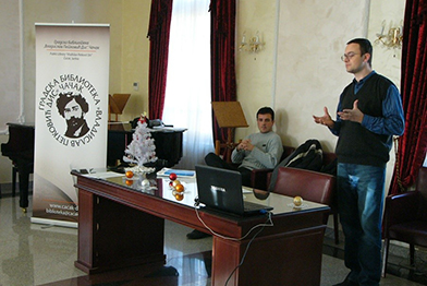 Поетско вече песникиње Ане Никвул![]() У петак, 25. децембра у сали Библиотеке одржано је поетско вече песникиње Ане Никвул. У програму су учествовали и полазници наше Школе гитаре. Стихове су читале Данијела Петковић и Љиљана Влаховић. Новогодишња радионица![]() У среду, 23. децембра на Дечијем одељењу библиотеке одржана је новогодишња радионица у сарадњи са Центром за боравак деце и омладине ометене у развоју. Сви смо се лепо забавили и направили честитке које красе зид Дечијег одељења. Промоција књиге "Историја дубровачке књижевности"![]() У среду, 23. децембра у сали Библиотеке одржана је промоција књиге "Историја дубровачке књижевности" професорке Злате Бојовић. Поред ауторке промоцији су присуствовали Драган Лакићевић, директор и уредник Српске књижевне задруге и Нина Новићевић, управника СКЗ. Акредитовано стручно предавање![]() У уторак, 22. децембра запослени у Библиотеци присуствовали су акредитованом стручном предавању на тему дигитализације библиотечког материјала. Предавање су одржали др Богдан Трифуновић и Александар Вукајловић из Градске библиотеке "Власдислав Петковић Дис" из Чачка. |