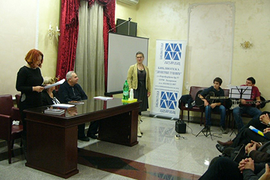 Промоција књиге "Урнебесна физика"![]() У среду, 16. децембра у Библиотеци је одржана промоција књиге "Урнебесна физика". Бранко Стевановић и Драгослав Пауновић показали су деци да ни књиге ни физика не морају да буду застрашујући, већ забавни колико и поучни. Предавање "Ваљево 1914-15. Град болница"![]() У уторак, 15. децембра у сали Библиотеке одржано је предавање Ваљево 1914-15. Град болница". Говорио је др Владимир Кривошејев, директор Народног музеја Ваљево и аутор истоимене изложбе. Након његовог излагања приказан је истоимени филм. И предавање и филм били су едукативни и занимљиви, а посетиоци су сазнали нешто више о значају свог завичаја у Великом рату. Лазаревац у Зворнику![]() У среду, 15. децембра Библиотека "Димитрије Туцовић" гостовала је у Народној Библиотеци Зворник и том приликом представила неке од својих многобројних активности. Овога пута представили смо Школу гитаре, а у име лазаревачких песника своју поезију говорио је Предраг Патијаревић. Поетско вече клуба љубитеља уметности из Лазаревца![]() У недељу, 13. децембра у сали Библиотеке, уз сарадњу Туристичке организације Лазаревца, одржано је поетско вече клуба љубитеља уметности из Лазаревца. Музичка подршка били су чланови Школе гитаре Ернот Хусеиновић и Перо Бјековић, Сунчица Стефановић СРНМ која је отпевала неколико изворних народних песама и Петар Влаховић који је одсвирао нумеру на гуслама. |